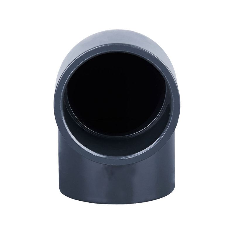 وصلة بلاستيكية بجميع الأحجام من مادة UPVC باللون الرمادي بزاوية 90 درجة DN15-DN600 لتركيبات الأنابيب ذات الشكل المتساوي لإمدادات المياه والصناعة الكيميائية